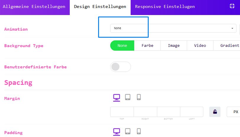 With the integrated animations at section, column and module level, you can choose from over 80 different animations.
