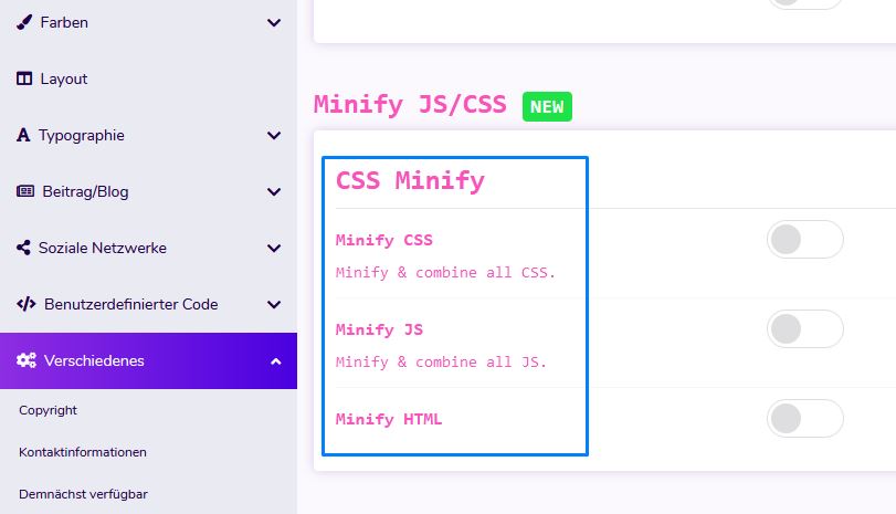 The JS / CSS compression feature allows you to compress CSS and JS files and reduce their size to increase the website loading speed.