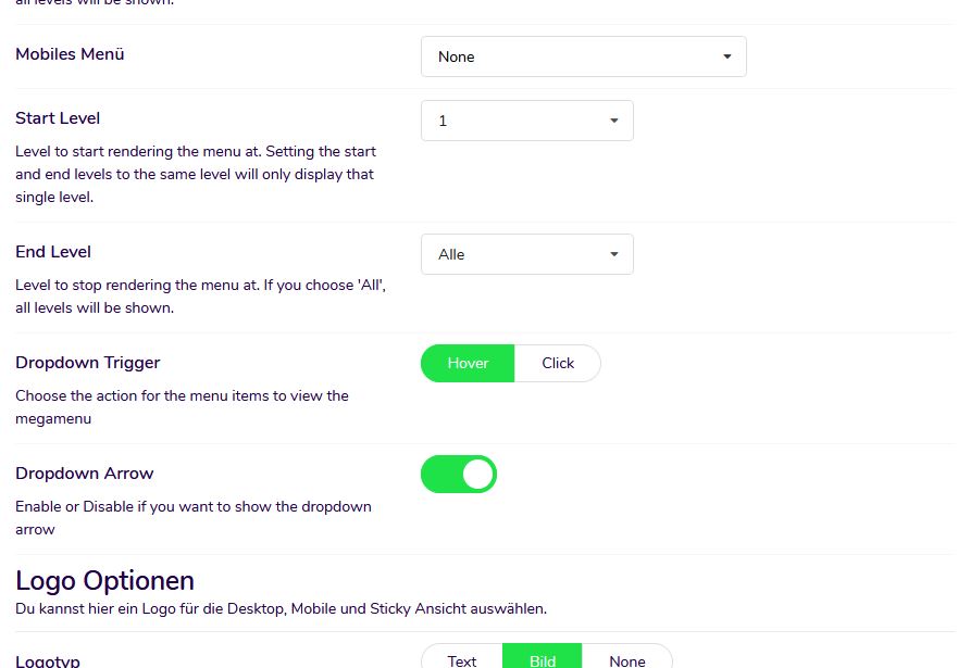 Configuring the mega menu is really easy and straightforward. With just a few clicks you can get a great looking mega menu. The first step is to configure the menu and choose the header layout for your site.